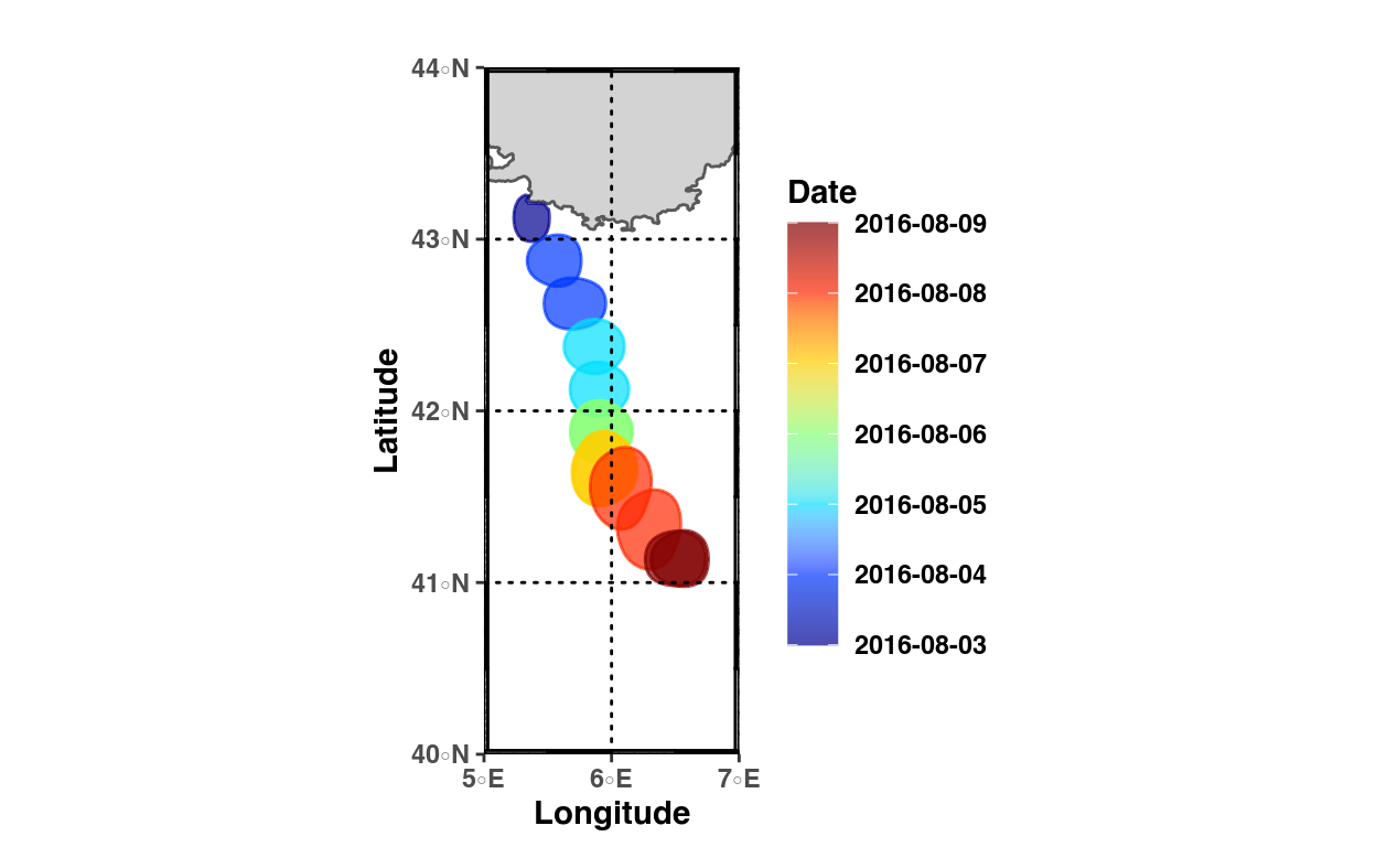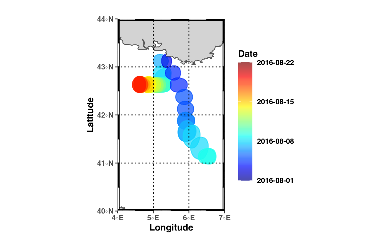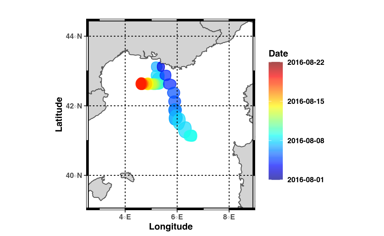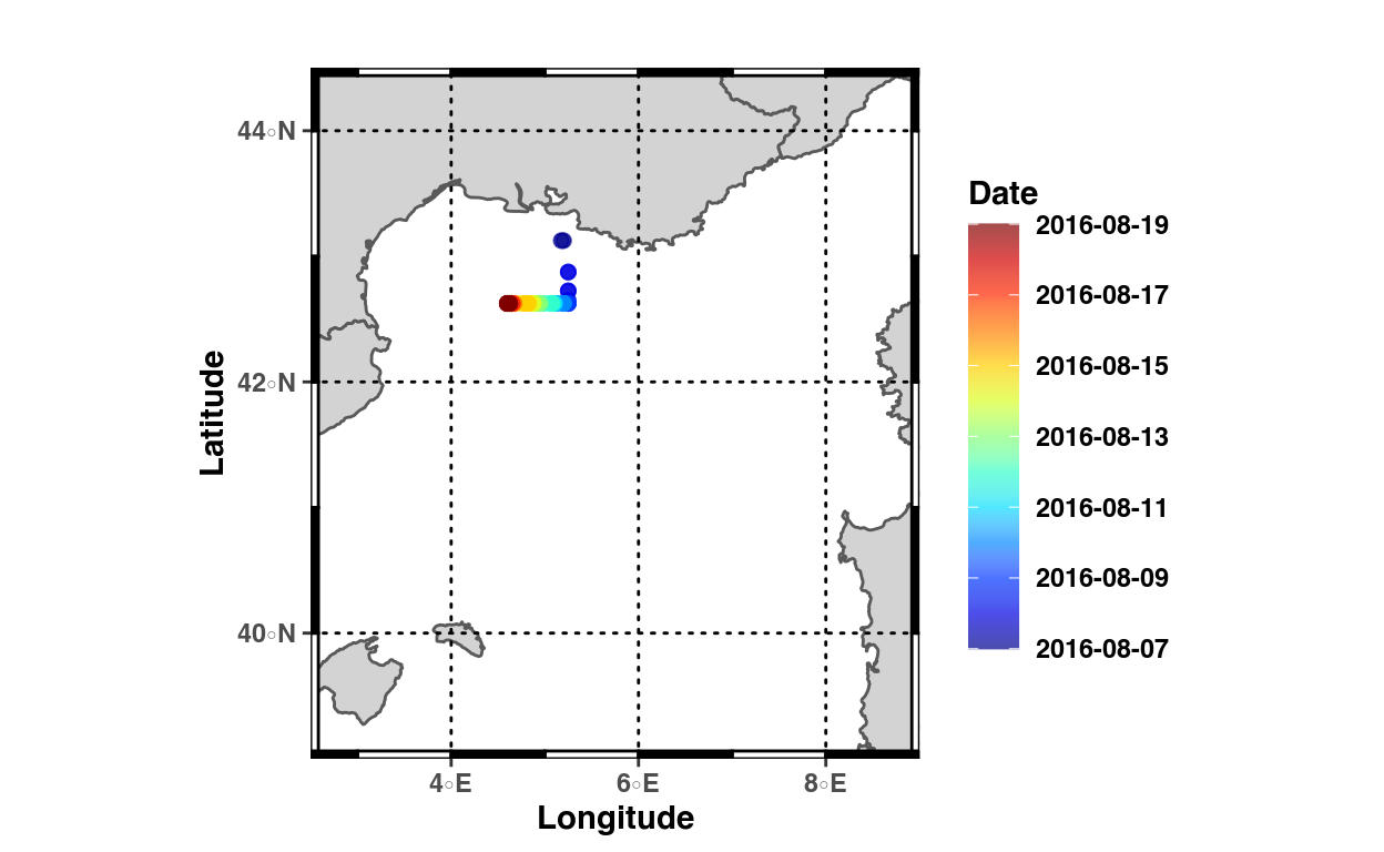 ggobj <- ggplot_geopos(csv_file,grid=F,bwd=0,xlim = c(2,9),ylim=c(39,44))