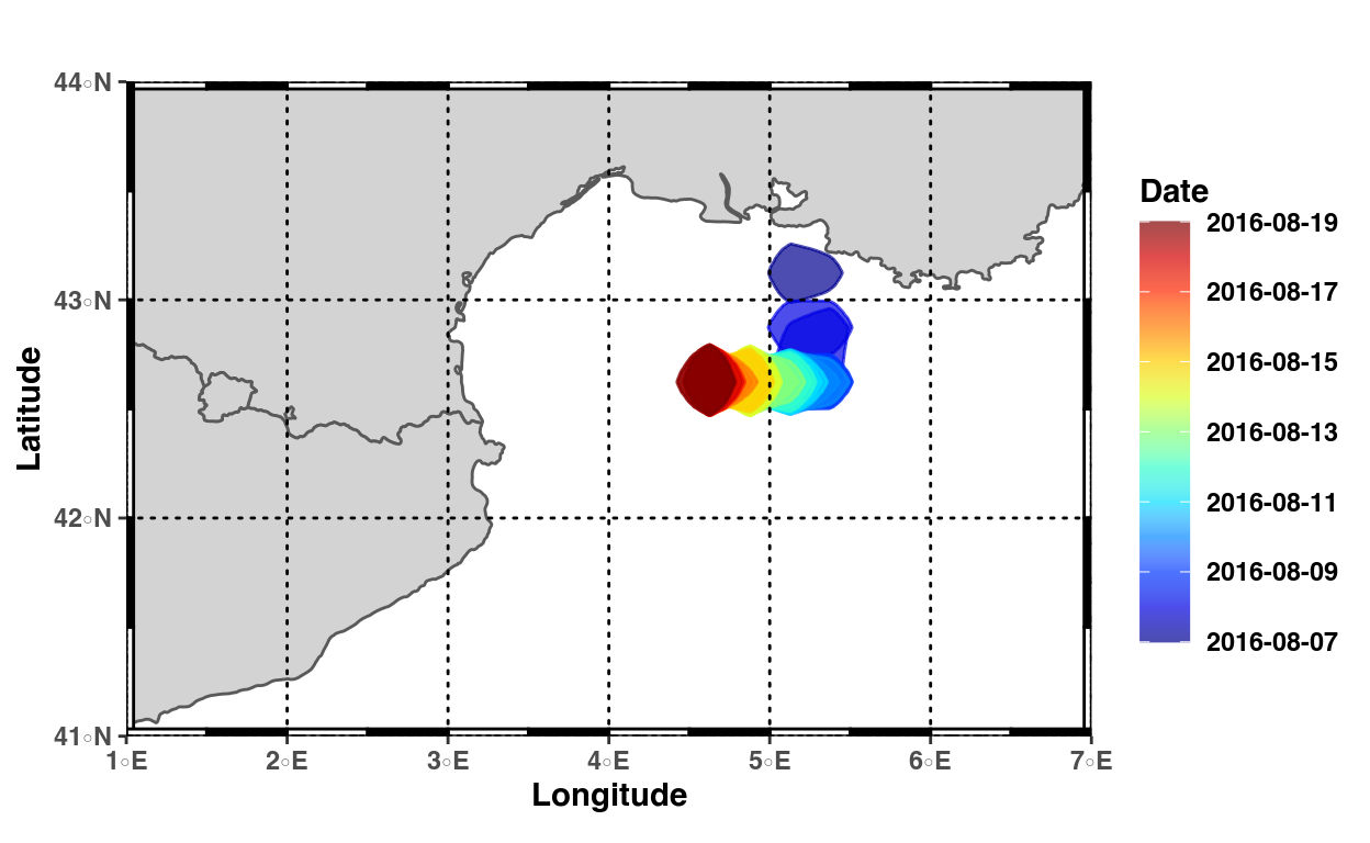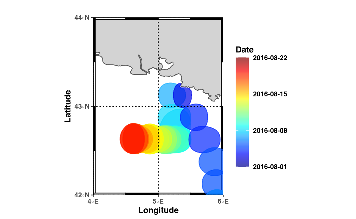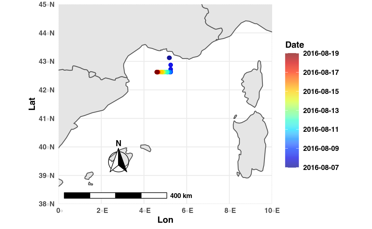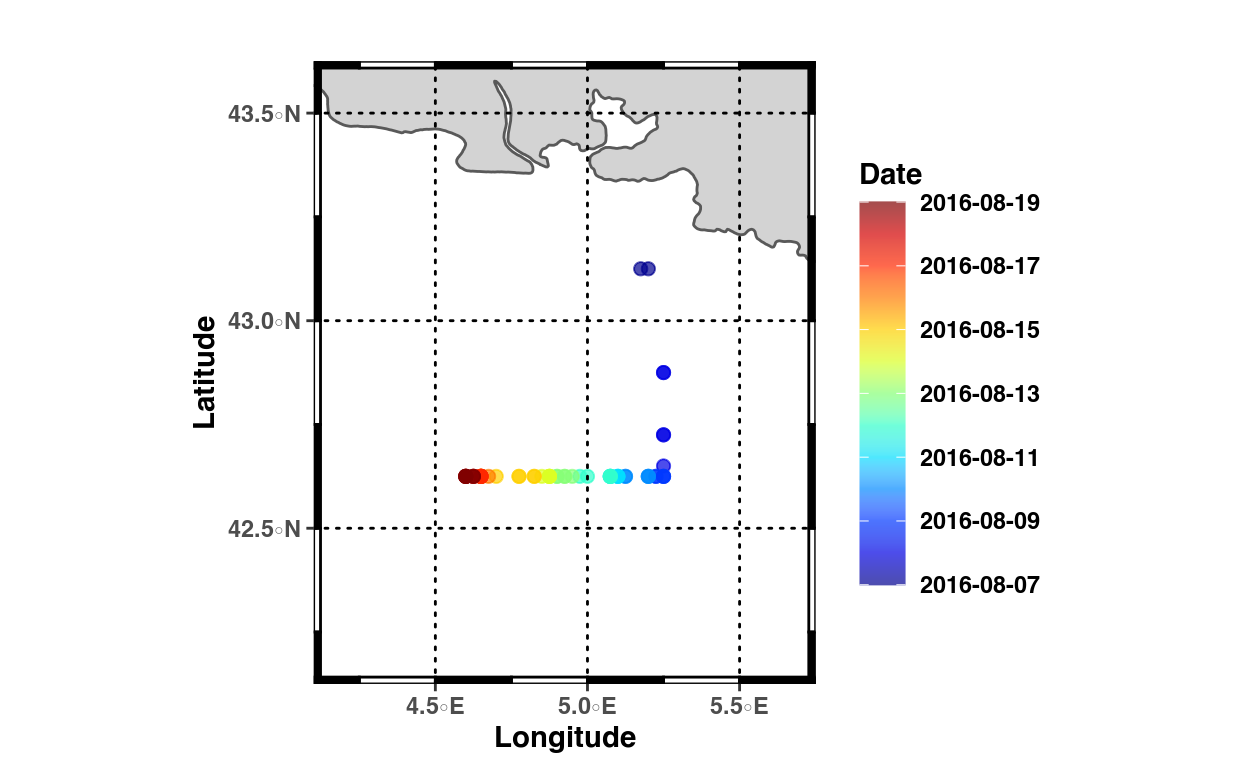 ggobj <- ggplot_geopos(csv_file,grid=F,bwd=0,xlim = c(2,9),ylim=c(39,44))